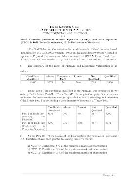 - SSC హెడ్ కానిస్టేబుల్ (AWO/TPO) తుది ఫలితం విడుదల..